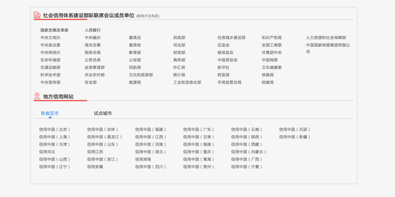 以及各地方政府和行业主管部门信用门户网站